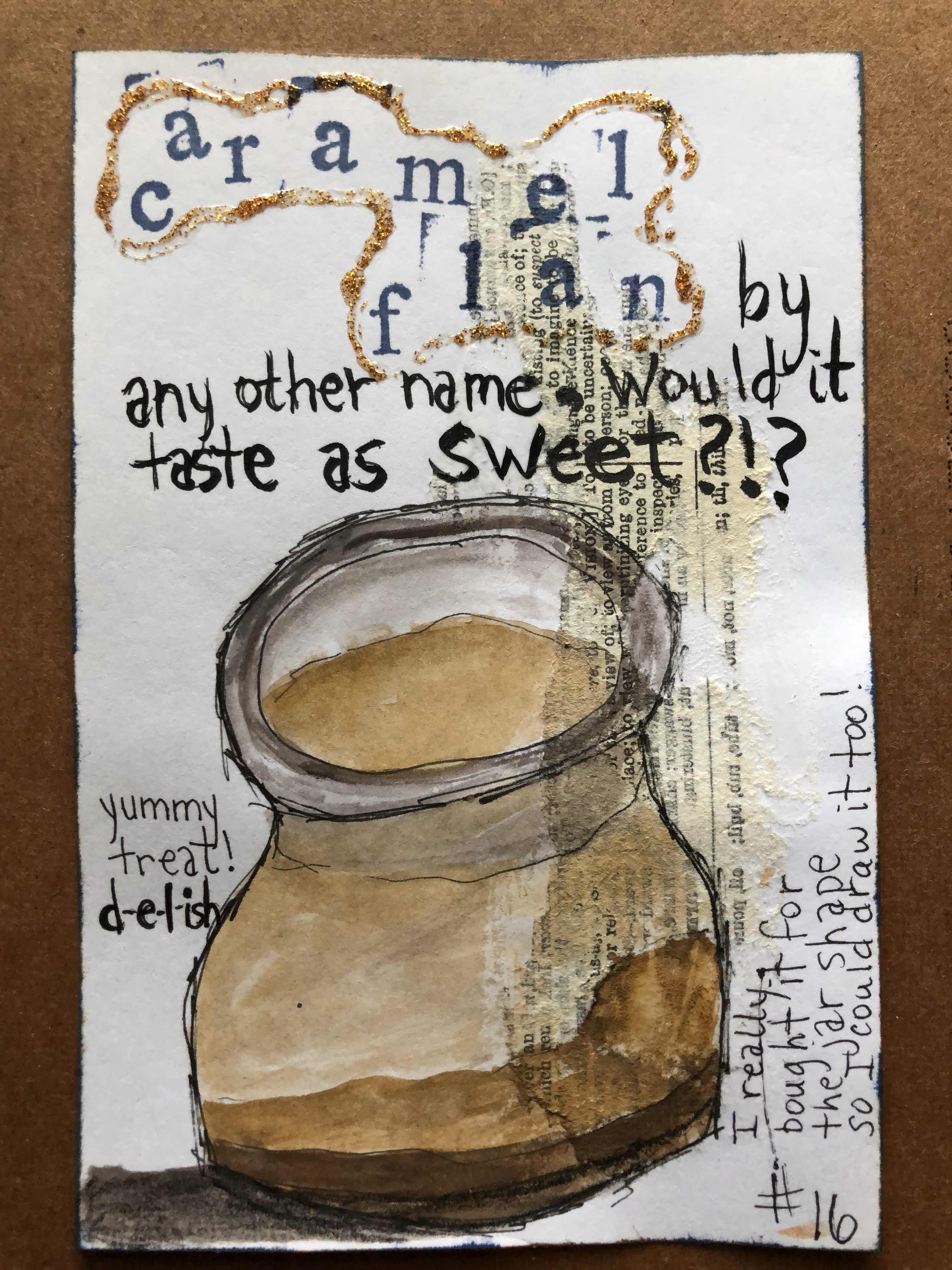 Alternate surfaces- working on creating index card art. Thanks to Big Al from the Sktchy app for the photo; I love sunshine on a cloudy day so I thought it might fit!!! I’ve used my index card to picked up some paint off my gel plate and used a hot coffee cup sleeve to add some marks and used a lime bag as a stencil for the little squares. Big Al collaged on top. I just bought a couple of Posca pen markers and they work wonderfully over top of acrylic paint.
