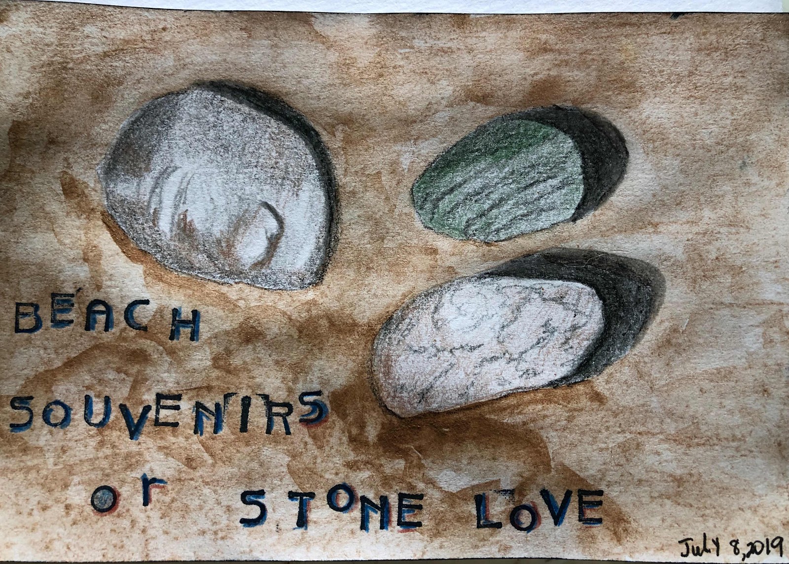 I brought some pebbles home from Southampton so I thought I would draw them.  I used DS Bronzite Genuine as the sand colour