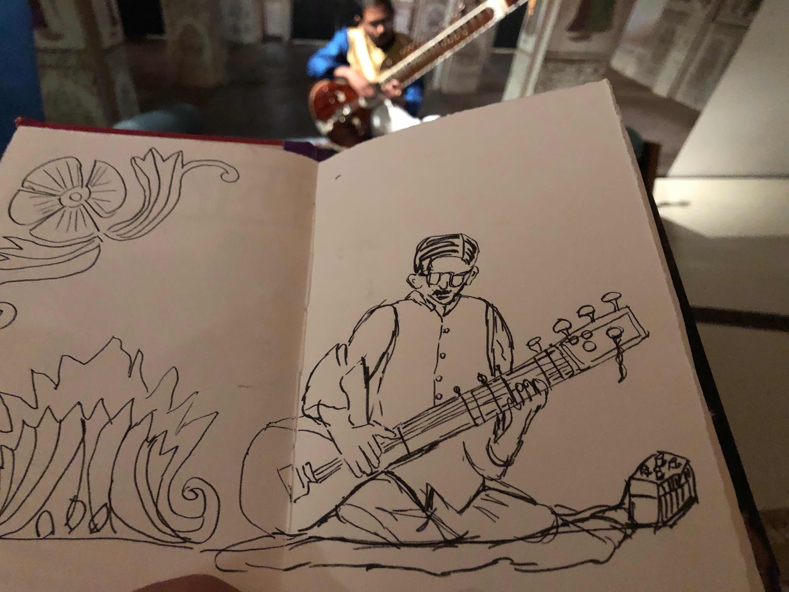 We visited the Royal Ontario Museum today in Toronto to see “The Treasures of a Desert Kingdom” exhibit and were lucky enough to be exactly at the right place at the right time for this performance. He played for approximately 30 minutes. I had a perfect seat directly opposite so I had the perfect seat for sketching. I went over to show him my drawing and he was kind enough to sign my sketchbook (not shown here though)!