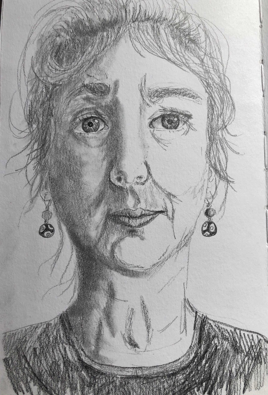 Here is my first “selfie” for 2020 and since that number made me think of my vision....I dew myself without wearing my glasses. No, no, I wore them to draw just didn’t add them on to my face in the drawing!