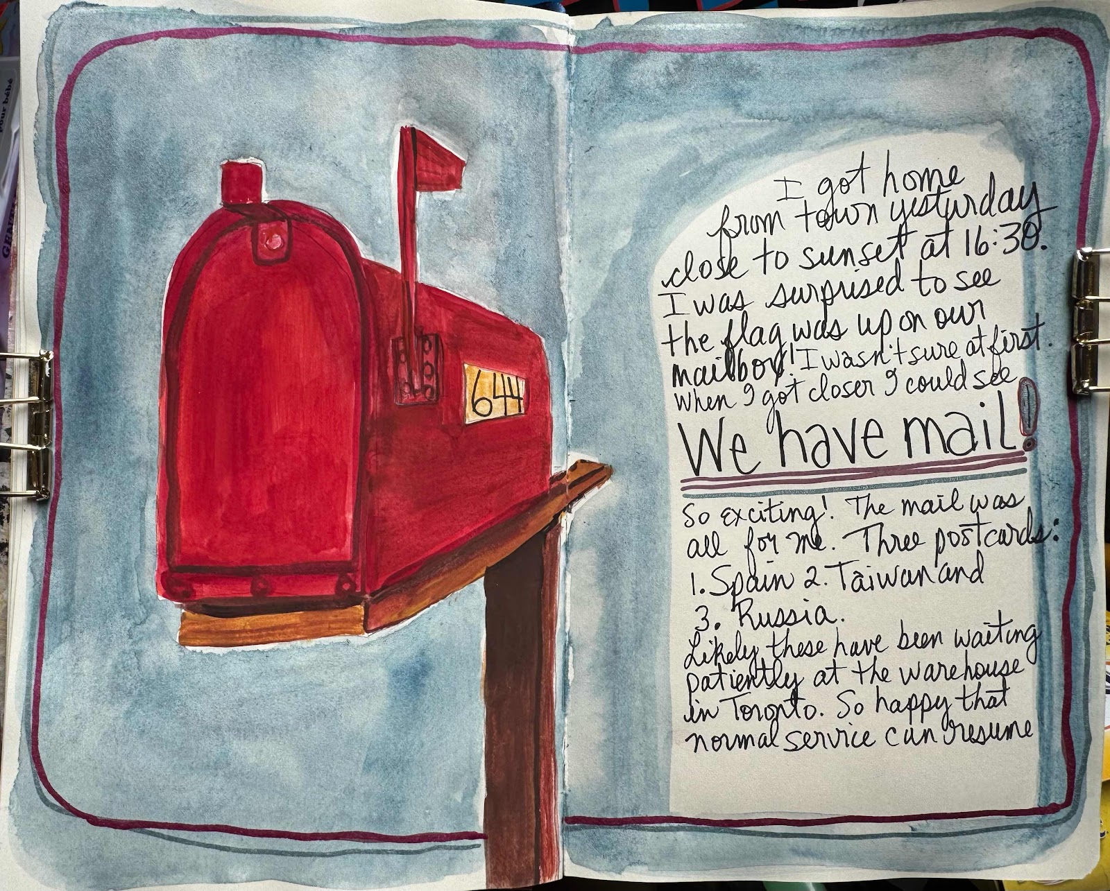 Yippee! The Canada Post mail strike is over! When I got home from town on Thursday it was dark enough that I wasn’t sure that the flag was up until I got very close to our laneway. Eureka! The flag was up! We have mail! So freaking happy! Sadly I didn’t make any Christmas cards this year because it is too late to mail out anyway. As far as I’m aware sending out international mail has only just opened up for us.