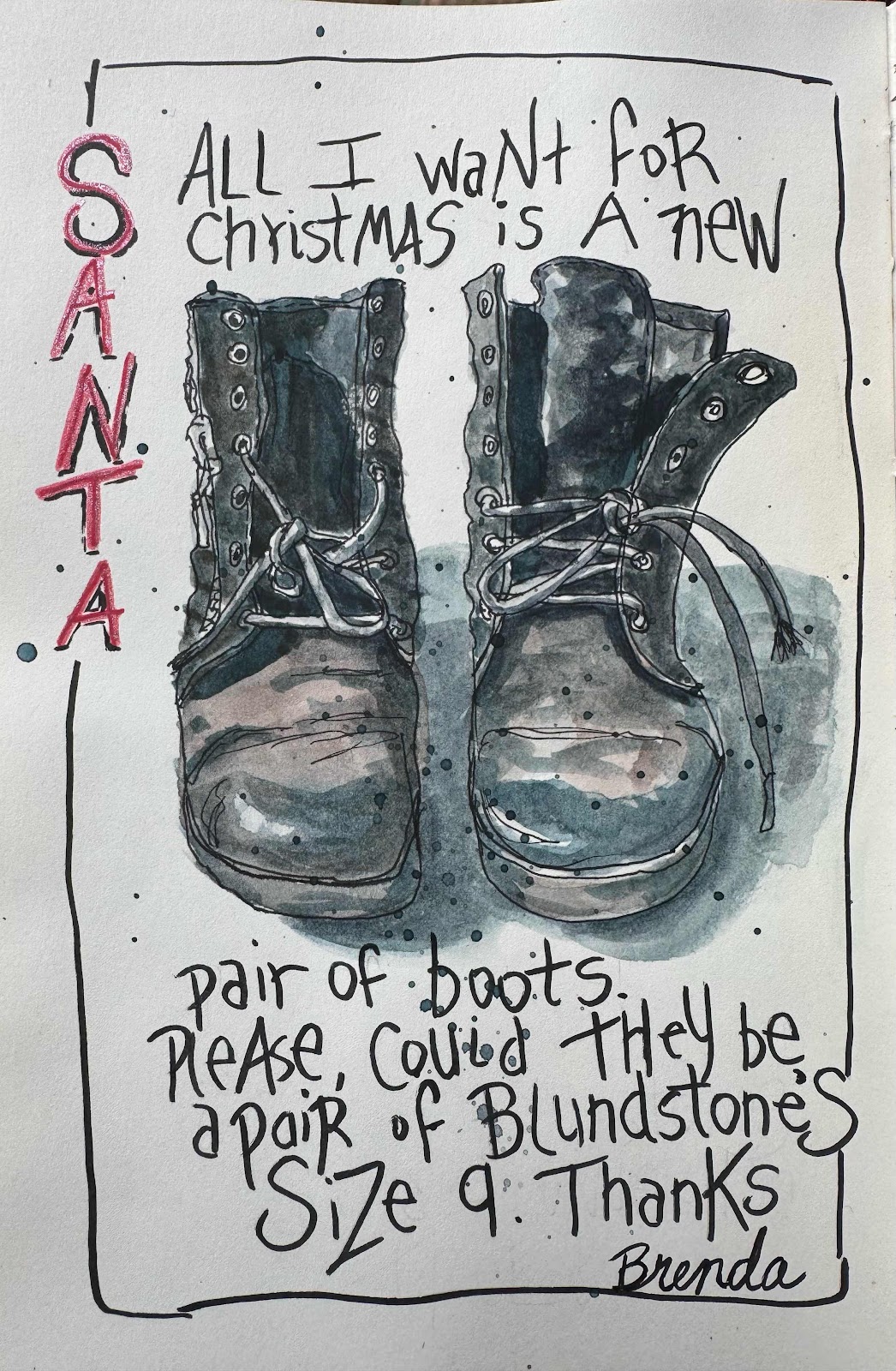 This is a page from my 2017 sketchbook. Yup, no letter to Santa this year because Canada Post has been on strike. Hopefully, they will be back to work tomorrow but we won’t know for sure until the weekend is over. Regardless, it might be too late to get a letter all the way from central Ontario to the North Pole!
